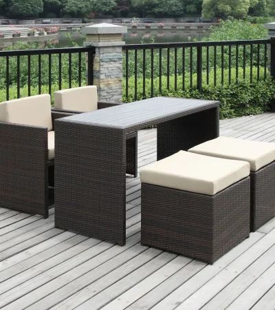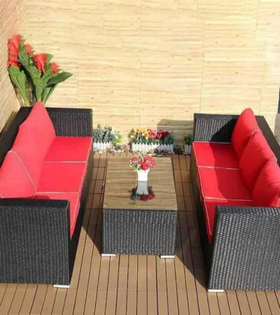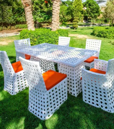 طقم خارجي – ترابيزة مع ست كرسي راتان – فرش چاكوار,