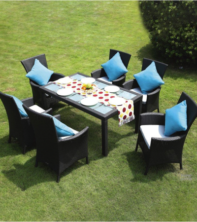 طقم خارجي – ترابيزة مع ست كراسي ,راتان – فرش چاكوار