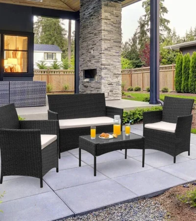 طقم خارجي – ترابيزة مع اربع كراسي , راتان – فرش چاكوار