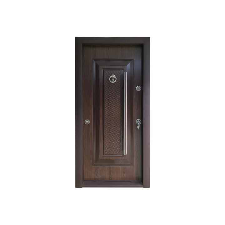 باب مصفح تركي 11 سم عرض 1 متر * ارتفاع 2.15 – حلق 15 سم تخانة صاج 1.2 مللي مع شفة امان ضد السرقة – مزود بكسسوار تركي خباطة دائرية ثقيلة مع 3 كاولين ماركة هوك التركية بالضافة الي شلسلة امان – ربر مانع للتربة والحشرات .